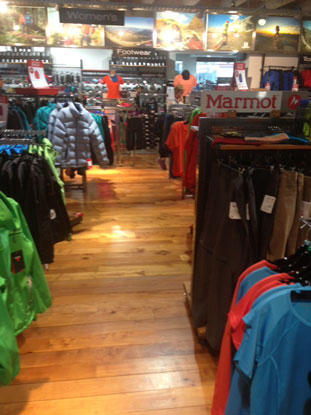 Commercial feature floor using Maple Beech knotty select appearance grade at Torpedo 7 store in Queenstown